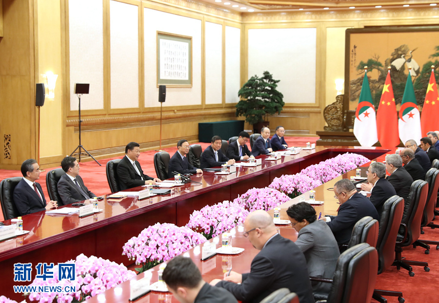 烏葉海亞表示,昨天,我向布特弗利卡總統報告了北京峰會的盛況。他讓我轉達對習近平主席的熱烈祝賀以及對中國支持非洲的衷心感謝。烏葉海亞表示,阿中關系歷史悠久。阿爾及利亞在爭取民族獨立和實現國家發(fā)展中得到中方寶貴支持,雙方在國際事務中一直緊密配合。阿方贊賞并支持北京峰會提出的中非合作新舉措,愿以此次雙方簽署“一帶一路”合作協議為契機,深化雙方務實合作。