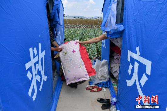 資料圖:民眾在救災(zāi)帳篷內(nèi)搭建臨時床鋪。 中新社記者 任東 攝