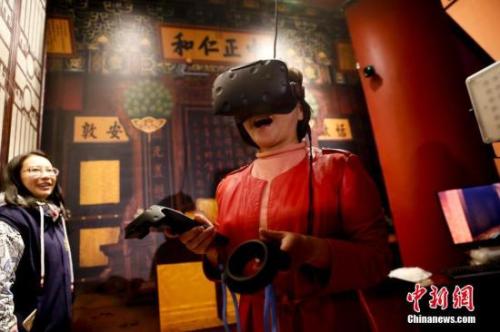 資料圖:"發(fā)現(xiàn)·養(yǎng)心殿——主題數(shù)字體驗展”在故宮端門數(shù)字館全新亮相。圖為運用VR技術(shù)參觀養(yǎng)心殿。中新社記者 杜洋 攝