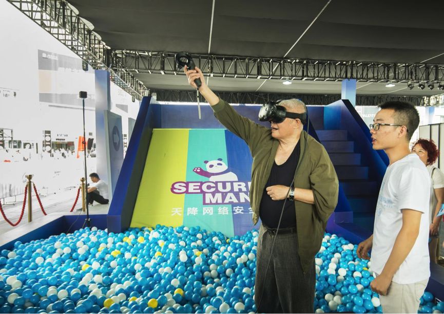 VR與滑梯、海洋球池結(jié)合,形成“連環(huán)暈眩術(shù)”,市民體驗滑梯后,再戴上VR眼鏡,在“暈?!焙蠡卮鹁W(wǎng)絡(luò)安全知識問題;