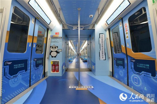 圖注:成都為2018年國家網(wǎng)絡安全宣傳周設計的地鐵主題列車“安安號”(攝影 王軍)