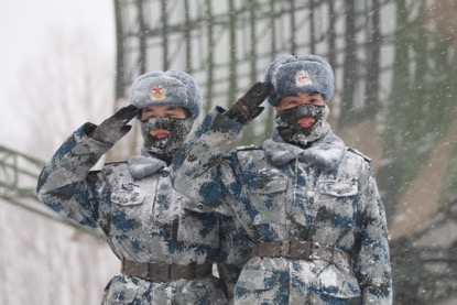 站士在雷達(dá)陣地站崗