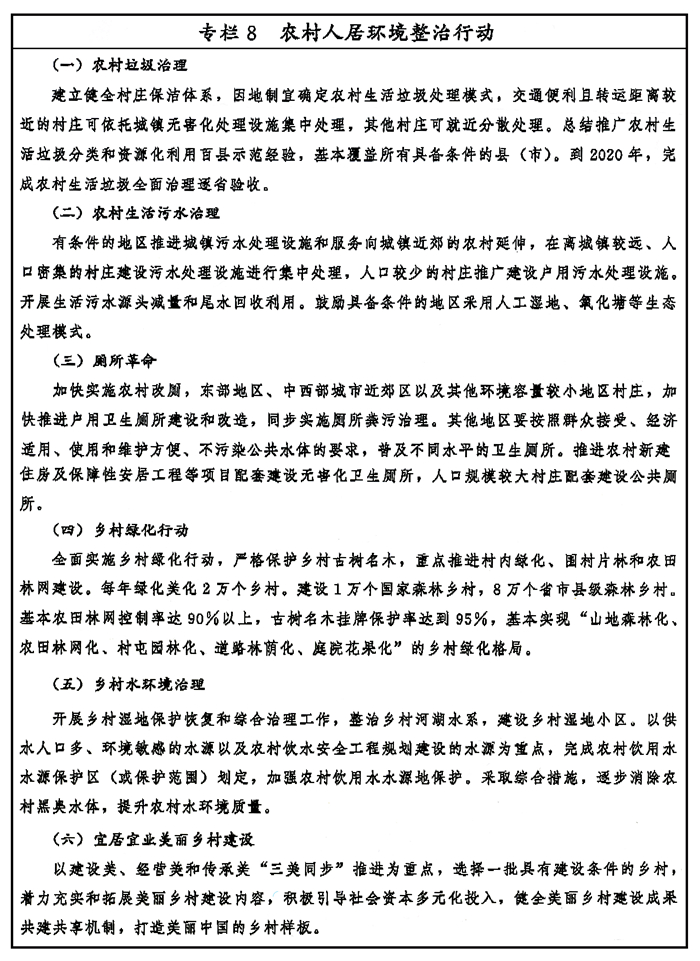 以建設(shè)美麗宜居村莊為導(dǎo)向,以農(nóng)村垃圾、污水治理和村容村貌提升為主攻方向,開展農(nóng)村人居環(huán)境整治行動(dòng),全面提升農(nóng)村人居環(huán)境質(zhì)量。