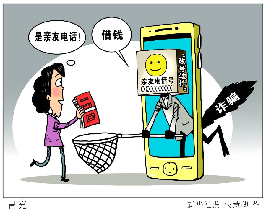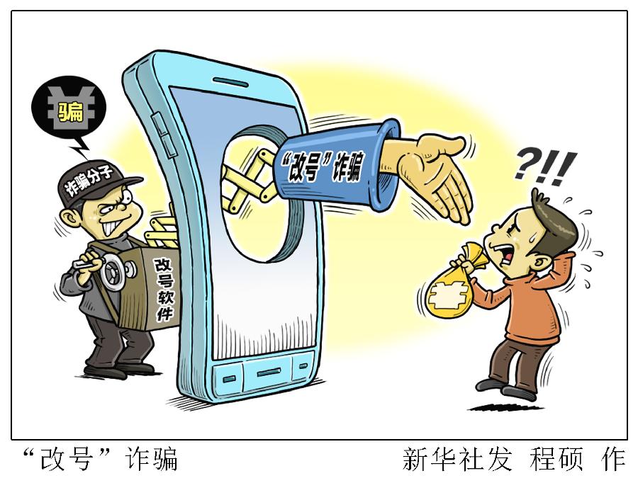 漫畫:“改號(hào)”詐騙? 新華社發(fā) 程碩 作