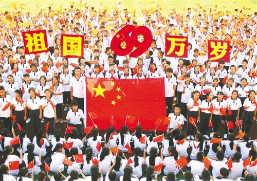 金風(fēng)送爽,五星紅旗迎風(fēng)招展;鮮花怒放,祖國大地一派喜慶。全國各地干部群眾載歌載舞,共同慶祝新中國成立69周年。