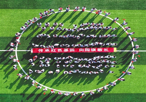 圖① 9月30日,浙江省德清縣春暉小學(xué)開展“喜迎國慶,祝福祖國”活動,培養(yǎng)學(xué)生們的愛國情操。沈月紅 攝