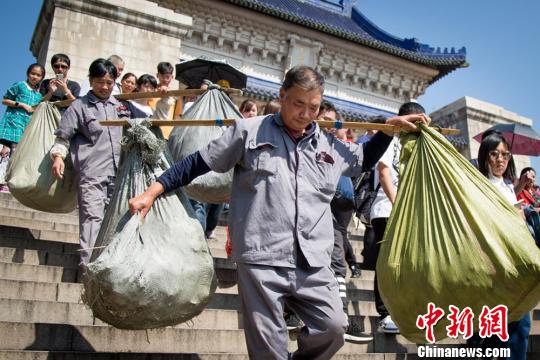 “十一”黃金周,廣大市民游客紛紛開啟休假模式,而環(huán)衛(wèi)工人依然堅(jiān)守崗位。在南京中山陵的藍(lán)瓦白墻下,流動(dòng)著這樣一群身影,他們穿著藏藍(lán)色工作服,手拿保潔工具,彎著腰,低著頭工作著,全心全力地保障景區(qū)的衛(wèi)生環(huán)境。徐道海、陳紅霞就是其中的兩位,據(jù)了解,他們?cè)阽娚斤L(fēng)景區(qū)服務(wù)了近20年,每天的工作就是將祭堂外的垃圾清運(yùn)至山下的垃圾中轉(zhuǎn)站去。他們每天在392級(jí)臺(tái)階上往返15趟。一位年輕游客說,“這兩位師傅真是了不起,看到他們,我們哪好意思再亂扔垃圾呀!”徐道海師傅憨憨的笑著說:“我在景區(qū)工作20年了,把景區(qū)當(dāng)做我的家,不管再苦再累,我也要將景區(qū)打掃干凈,這不僅是給游客留下一個(gè)好印象,也是對(duì)先人的敬仰和尊重?!?/p>