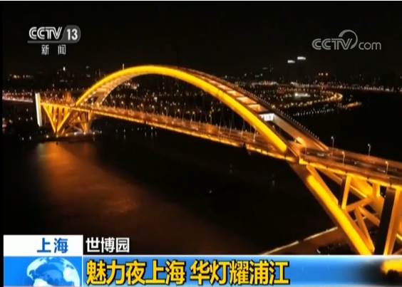弧形的橋拱變身“空中彩虹”飛架兩岸,盧浦大橋優(yōu)美的曲線倒映水中,7300盞景觀燈造就了這飛虹臥波的美景。