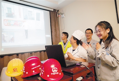 10月4日,正在建設(shè)中的北京地鐵19號線牡丹園車站,中鐵七局職工通過視頻投影設(shè)備和親人連線交流。國慶假期,許多建設(shè)者堅守崗位無法與家人團聚,項目部為他們開通親情連線,利用微信、在線視頻等多種通訊工具讓他們和遠(yuǎn)在外地的親人視頻通話。經(jīng)濟日報記者 趙 晶攝