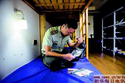2018年8月7日,王志國(guó)在宿舍里看著與家人的合影回憶往事。