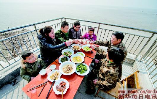 2015年2月13日,王志國(guó)(左三)和姐姐一家在開(kāi)山島上和父母團(tuán)聚。