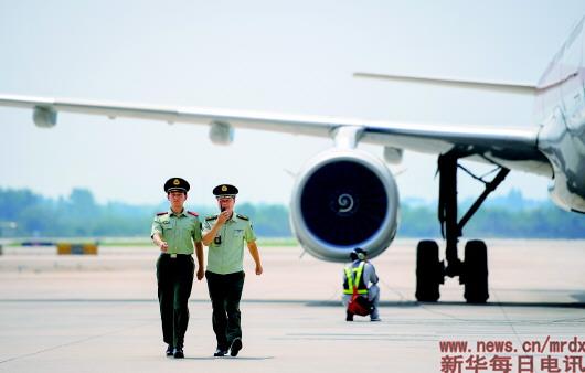 2018年8月7日,在南京祿口國(guó)際機(jī)場(chǎng),王志國(guó)跑步前往驗(yàn)證臺(tái)。