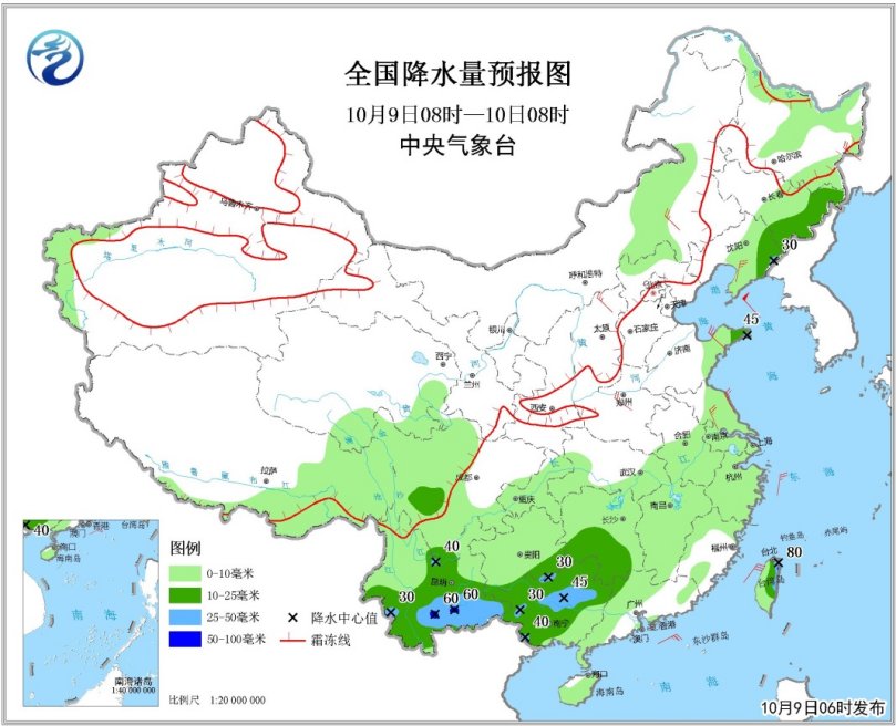 張博:此輪冷空氣是國慶前期冷空氣的補(bǔ)充冷空氣,9日至10日,受補(bǔ)充冷空氣影響,西北地區(qū)東北部、華北、東北中南部、黃淮、江淮、江南東部等地有4~6級(jí)偏北風(fēng),氣溫將下降4~6℃。預(yù)計(jì)本輪冷空氣將于明日(10日)結(jié)束,后期我國中東部地區(qū)氣溫會(huì)有小幅回升。受其影響,9日至11日,東北地區(qū)中東部有雨雪天氣,其中,吉林東部、黑龍江東南部部分地區(qū)有中到大雪,局地暴雪。