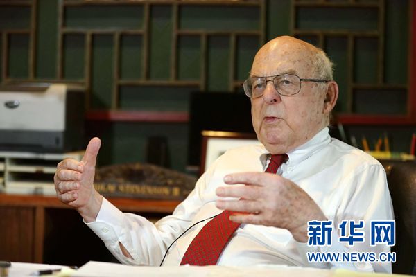 7月16日,美國(guó)前聯(lián)邦參議員斯蒂文森三世在芝加哥的家中接受新華社記者專訪。新華社記者汪平攝