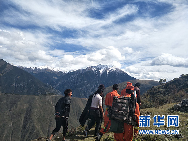 先遣隊員在波公村勘察地質(zhì)災(zāi)害情況(10月12日攝)。 新華社發(fā)(夏能 攝)