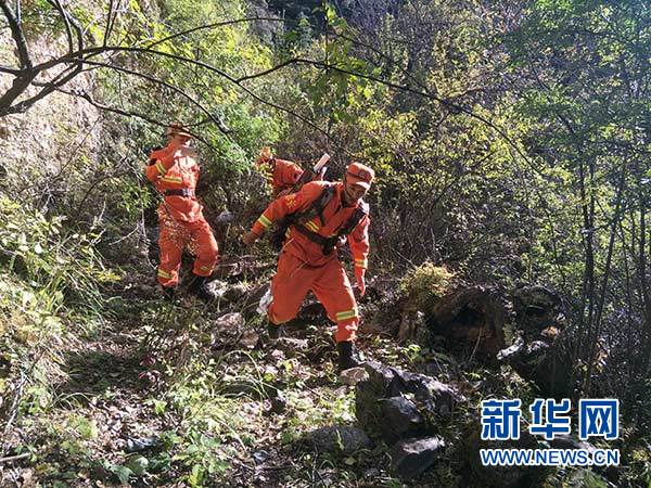 先遣隊員向山體滑坡核心區(qū)挺進(10月11日攝)。 新華社發(fā)(夏能 攝)