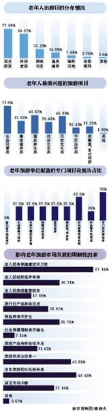 針對老年旅游市場目前存在的不足,報告提出,應系統(tǒng)開發(fā)老年旅游市場,培育和推廣老年旅游服務優(yōu)質(zhì)產(chǎn)品,加強對老年旅游接待工作的規(guī)范和管理,完善和優(yōu)化老年旅游服務標準,提升老年旅游服務質(zhì)量和服務接待水平。