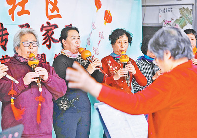 10月16日,北京市海淀區(qū)北下關街道廣通苑社區(qū)葫蘆絲樂隊在表演節(jié)目。當日,該社區(qū)舉辦“重陽孝道,傳承家風”活動,組織社區(qū)文藝團隊為老人們表演節(jié)目,開展讀家書等活動,迎接重陽節(jié)。新華社記者 鞠煥宗攝