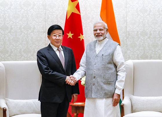 10月23日,印度總理莫迪在新德里會見國務委員、公安部部長趙克志。