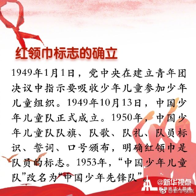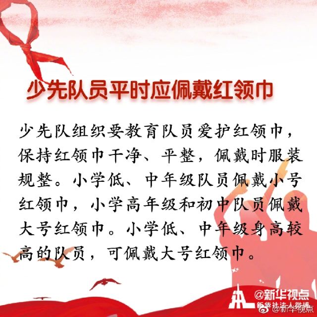 “我們是共產主義接班人,繼承革命先輩的光榮傳統(tǒng),愛祖國,愛人民,鮮艷的紅領巾飄揚在前胸?!奔t領巾是紅旗的一角,是少年先鋒隊的象征與標志。你是幾歲佩戴上的紅領巾?你對曾經朝夕相伴的紅領巾了解多少?戳圖看詳解↓↓