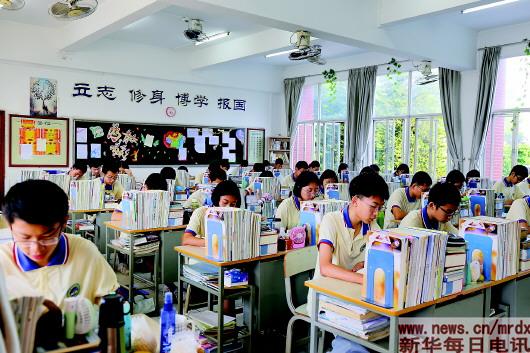 國華紀(jì)念中學(xué)學(xué)生在晨讀。本報(bào)記者謝銳佳攝