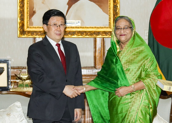 孟加拉國(guó)總理哈西娜10月25日在達(dá)卡會(huì)見(jiàn)國(guó)務(wù)委員、公安部部長(zhǎng)趙克志。