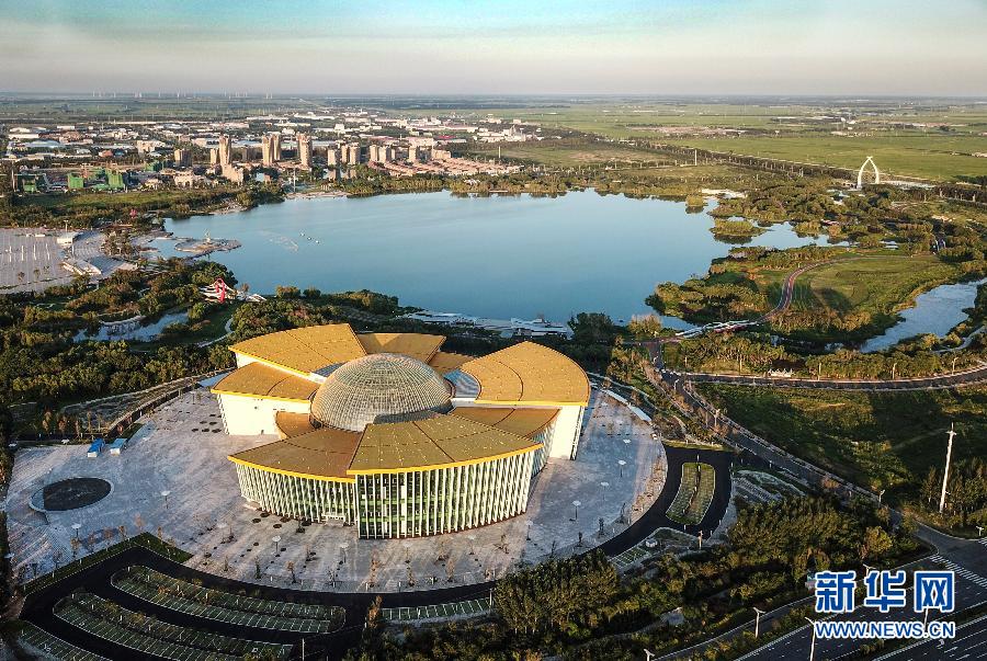 這是白城市科文中心及鶴鳴湖公園全景(7月28日無(wú)人機(jī)拍攝)。 新華社記者許暢攝