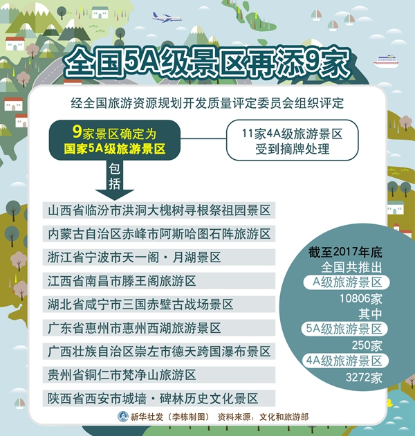 全國5A級景區(qū)再添9家 新華社發(fā) 李棟 制圖