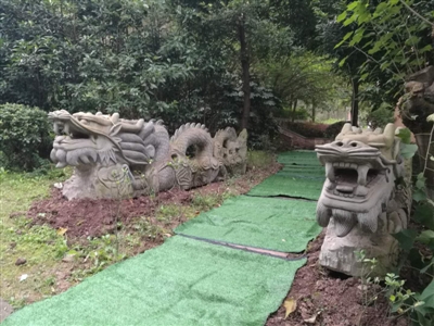 11月5日上午,記者在瑞豐公館小區(qū)看到,兩條巨龍還安放在8號(hào)樓下面的過(guò)道邊,石像立在綠地的一棵樹(shù)下。一位綠化工人介紹,龍還沒(méi)搬進(jìn)來(lái)的時(shí)候,范順清在過(guò)道兩邊砌了一尺高的磚作為基座,后來(lái)不知被誰(shuí)清理掉了,但后來(lái)兩條龍還是搬運(yùn)了進(jìn)來(lái),直接放在土里。