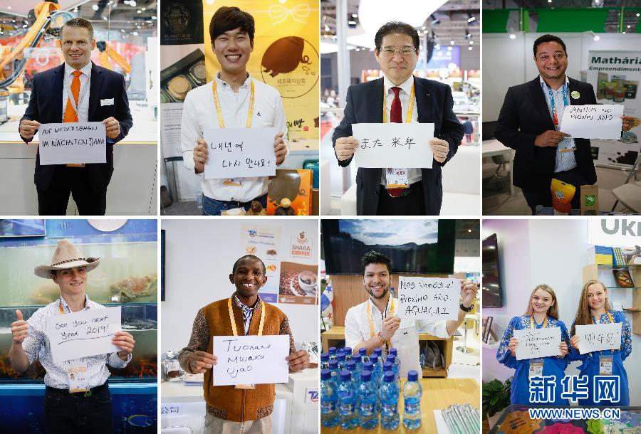 11月10日,進(jìn)博會(huì)上不同國(guó)家的參展人員展示用不同語(yǔ)言書寫的“明年見(jiàn)”(拼版照片)。 首屆中國(guó)國(guó)際進(jìn)口博覽會(huì)11月5日至10日在上海舉行。記者在采訪中了解到,很多參展商在進(jìn)博會(huì)上收獲了不少訂單,宣傳了自己的產(chǎn)品,結(jié)識(shí)了很多朋友。他們表示,希望明年再來(lái)進(jìn)博會(huì)。 新華社記者 侯東濤 攝