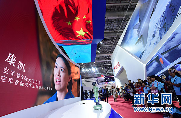 藍(lán)天春蕾女童在航展現(xiàn)場(chǎng)參觀(11月10日攝)。 新華社發(fā)(陳藝 攝)
