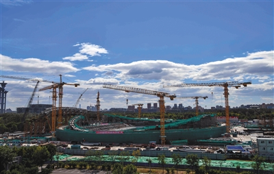 9月30日,北京冬奧會標志性建筑國家速滑館混凝土主體結(jié)構(gòu)完成,“冰絲帶”已經(jīng)拔地而起,在北京奧林匹克公園露出了偉岸的身軀。圖/視覺中國