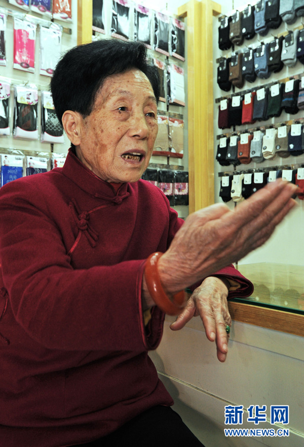 78歲的義烏小商品市場(chǎng)第一代經(jīng)營戶馮愛倩講述創(chuàng)業(yè)經(jīng)歷(10月25日攝)。新華社記者 譚進(jìn) 攝