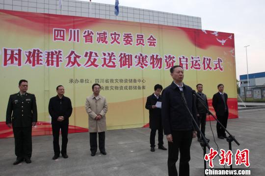 2018年冬向四川全省受災(zāi)困難群眾發(fā)送御寒物資啟運(yùn)儀式,11月23日上午在四川省救災(zāi)物資儲(chǔ)備中心舉行。