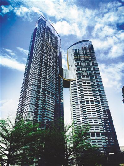 創(chuàng)新之城從不缺乏創(chuàng)新人才。在東海國際公寓施工中,要數(shù)空中連廊連接最難,要將總重約700噸的鋼結(jié)構(gòu)連廊提升至180米的高空處。經(jīng)過長達(dá)半個(gè)月的討論和研究,邵寶奎和同事最終決定采用液壓整體提升技術(shù),先在地面上將連廊拼接完畢,最后一次性提升至高空。這在工地施工中還很少使用。