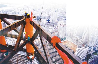 賽格廣場鋼結(jié)構(gòu)封頂。邵寶奎攝