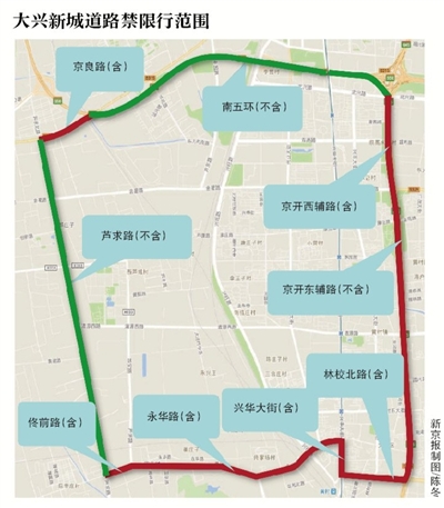 昨日,新京報(bào)記者從大興區(qū)政府獲悉,2019年1月1日起,大興區(qū)將對(duì)大興新城部分道路采取交通管理措施。具體來(lái)說(shuō),在禁限行區(qū)域內(nèi),每日6時(shí)至23時(shí),禁止載貨汽車、專項(xiàng)作業(yè)車通行;工作日7時(shí)至9時(shí)、17時(shí)至20時(shí),禁止外省、區(qū)、市核發(fā)號(hào)牌(含臨時(shí)號(hào)牌)的載客汽車通行。