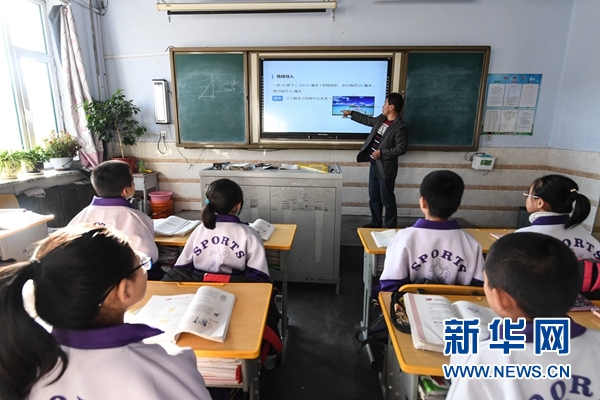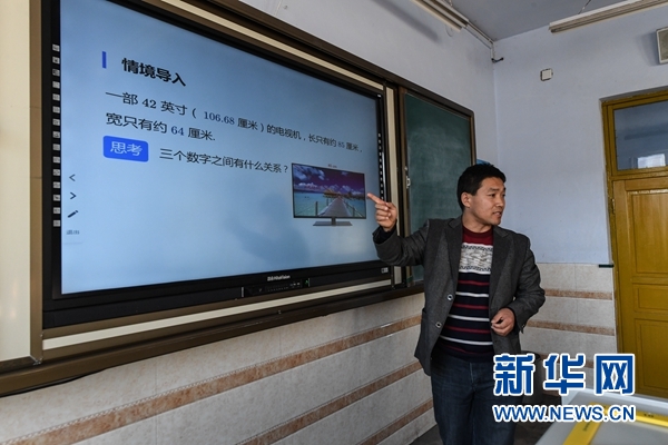 11月30日,在吉林省榆樹(shù)市五棵樹(shù)鎮(zhèn)中學(xué),教師李玉虹利用多媒體教學(xué)系統(tǒng)給學(xué)生們上數(shù)學(xué)課。 新華社記者 張楠攝