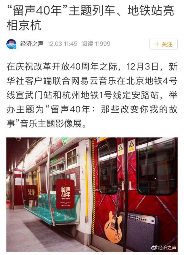 (文化)(6)“留聲40年”主題列車、地鐵站亮相京杭