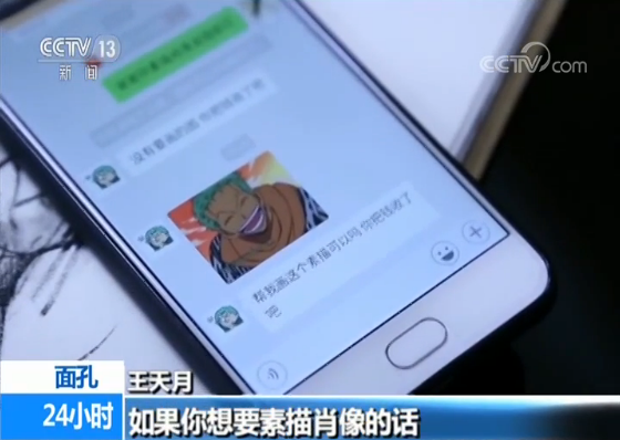王天月:一般給我打錢,我都會說如果你想要素描肖像的話,把你的照片發(fā)給我就行,這個發(fā)的是動畫片。
