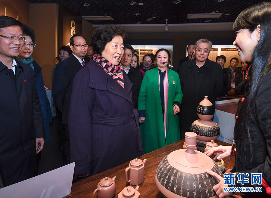 12月12日,中共中央政治局委員、國(guó)務(wù)院副總理、中央代表團(tuán)副團(tuán)長(zhǎng)孫春蘭率中央代表團(tuán)二分團(tuán),看望慰問(wèn)欽州各族各界干部群眾,轉(zhuǎn)達(dá)以習(xí)近平同志為核心的黨中央的親切關(guān)懷和全國(guó)人民的美好祝福。這是孫春蘭在坭興陶博物館考察。 新華社記者 申宏 攝