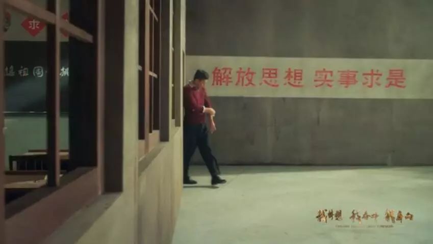 ??? 片中人們喜迎大會(huì),共同分享這一紀(jì)念性的時(shí)刻,我們看到的背景墻上寫著“解放思想,實(shí)事求是”體現(xiàn)了時(shí)代精神。警察、郵遞員、工廠女工、老人、學(xué)生和年輕人的服裝,按照當(dāng)年的樣式進(jìn)行還原,并且全部進(jìn)行重新制作,完全還原了當(dāng)時(shí)的場(chǎng)景。