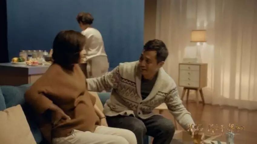 回到現(xiàn)代家庭的生活,人們的飲食、穿著、所用的生活電器都有明顯提升,這與之前八十年代的家庭形成了鮮明的對(duì)比。劉燁扶著懷孕的妻子一起坐在沙發(fā)上,妻子隆起的小腹代表著劉燁這個(gè)家庭對(duì)全面二孩政策的響應(yīng)。