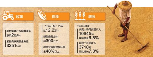 這一年,以農(nóng)業(yè)供給側(cè)結(jié)構(gòu)性改革為主線,由增產(chǎn)導向轉(zhuǎn)變?yōu)樘豳|(zhì)導向,質(zhì)量興農(nóng)、綠色興農(nóng)、品牌強農(nóng)正成為農(nóng)業(yè)發(fā)展的主旋律。這一年,深化戶籍制度改革,推進異地就醫(yī)結(jié)算,農(nóng)民工享受到更多公共服務。這一年,整治農(nóng)村人居環(huán)境,大病救治范圍擴大,農(nóng)村民生持續(xù)改善……