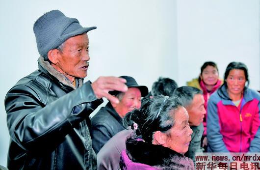 “我也要說兩句。”聽了談話內(nèi)容,這位叫申永貴的老人站了起來。“這一二年,家家院壩修得好,生活變化大,都是習(xí)總書記關(guān)心咱們老百姓。我已經(jīng)79歲嘍,生活好了,就想著多活一年半載,能看著我們村變得更好。”老人的話引來一片掌聲。