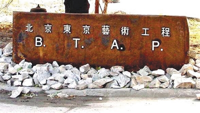 在靠近尤倫斯藝術(shù)中心的一棵樹(shù)下,一個(gè)鐵鑄的牌子上寫(xiě)著“北京東京藝術(shù)工程B.T.A.P.”,這是798第一塊地域意義上的牌子。2002年北京東京藝術(shù)工程開(kāi)幕的時(shí)候,由黃銳等藝術(shù)家籌資所立。