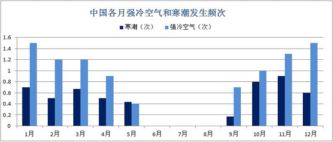 中國各月強冷空氣和寒潮發(fā)生頻次 圖片數(shù)據(jù)來源:國家氣候中心