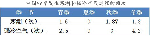 中國四季發(fā)生寒潮和強冷空氣過程的頻次 圖片數(shù)據(jù)來源:國家氣候中心