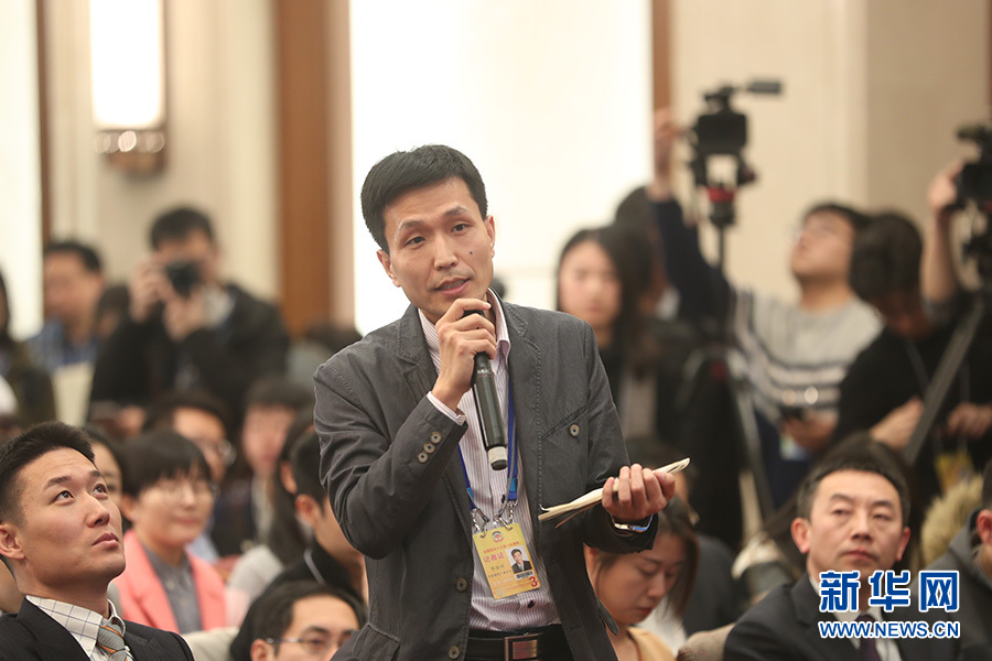 全國政協(xié)十三屆一次會(huì)議新聞發(fā)布會(huì)3月2日16:30在人民大會(huì)堂一層新聞發(fā)布廳召開,大會(huì)新聞發(fā)言人王國慶向中外媒體介紹本次大會(huì)有關(guān)情況并回答記者提問。圖為中國國際廣播電臺(tái)記者提問。新華網(wǎng)/中國政府網(wǎng) 曲植 攝