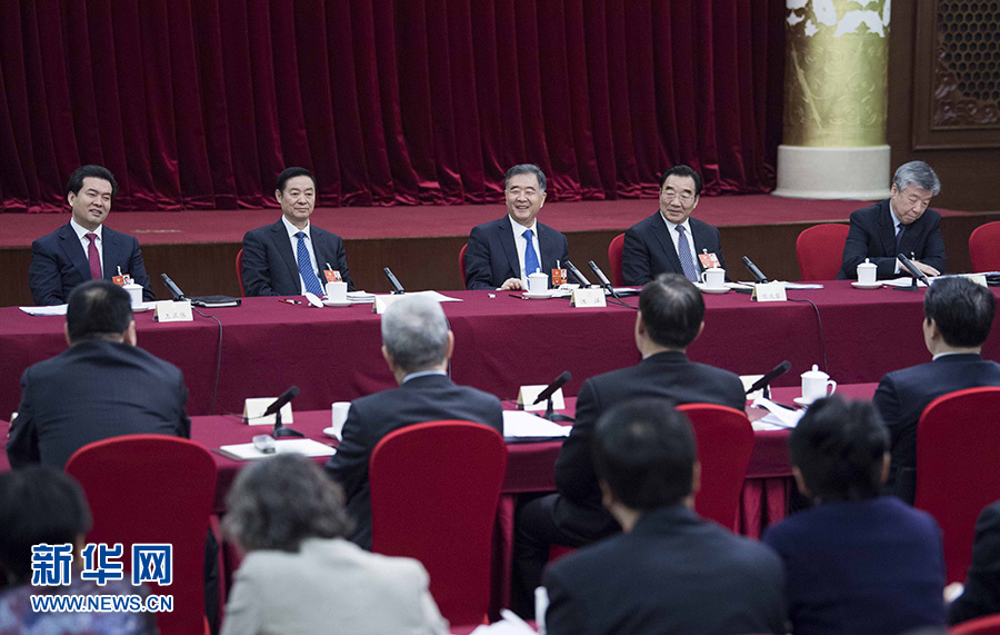 3月4日,中共中央政治局常委、全國政協(xié)十三屆一次會議主席團會議主持人汪洋看望出席全國政協(xié)十三屆一次會議的中共界委員并參加討論。新華社記者 李濤 攝
